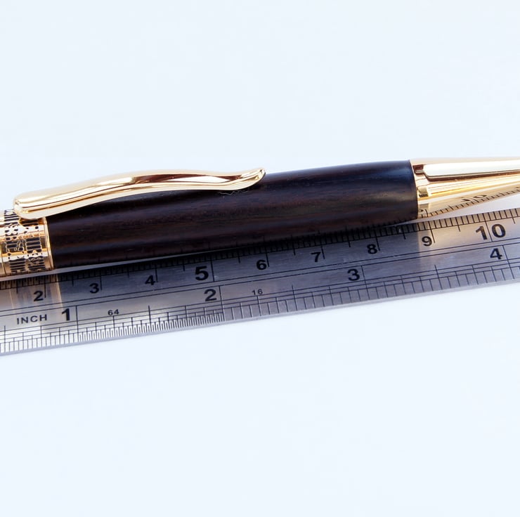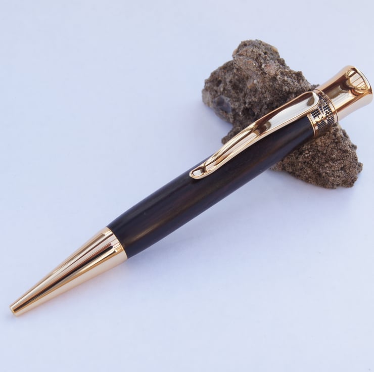 This pen was handturned by me in my workshop in suffolk, the metal parts are gold finish, Included in the price is a black card presentation box & Protective velvet sleeve
