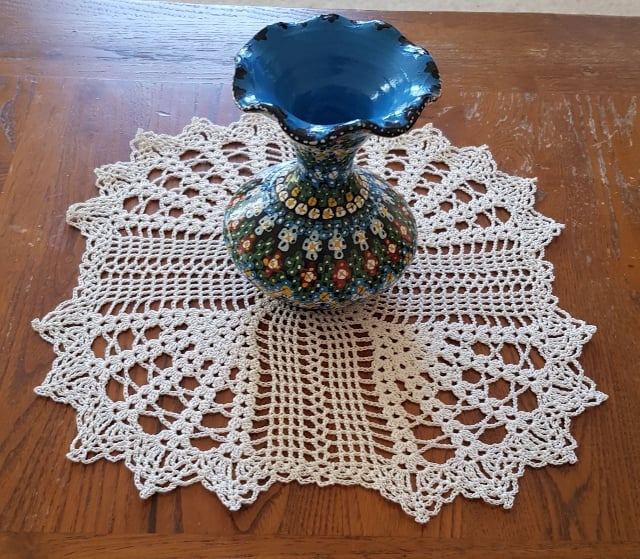 Please note, this doily has a soft finish,it has not been starched. It can be washed gently, and dried flat in order to keep it's shape.