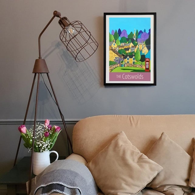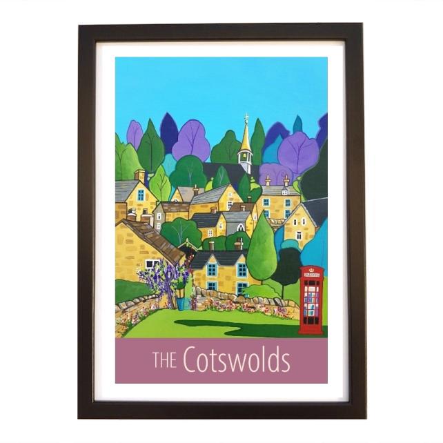 A contemporary travel poster style print of the beautiful Cotswolds, from my own original acrylic painting.