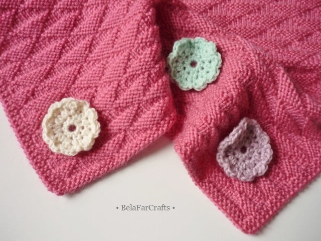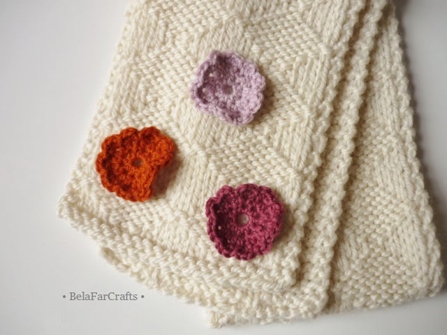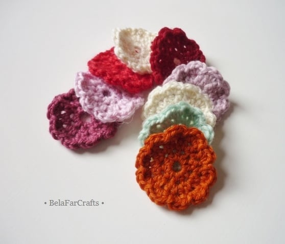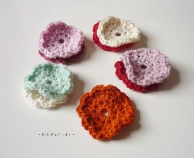 These cute flower appliques can be attached to gift boxes, scarves, hats, handbags, blankets etc. You can sew them separately or two together for more texture. They are also perfect for craft projects!