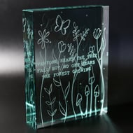 It is high quality LSA glass, the design is sandblasted so it is permanent and will never fade. This tealight holder is 8.5 cm high and has a diameter of 9cm. Every tealight holder comes with a tealight and is packaged in the original LSA presentation box.