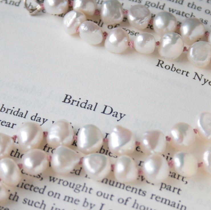 Pearls are always popular as wedding jewellery and the traditional style of this necklace with the modern twist of coloured silk thread makes it a lovely gift for many occasions.