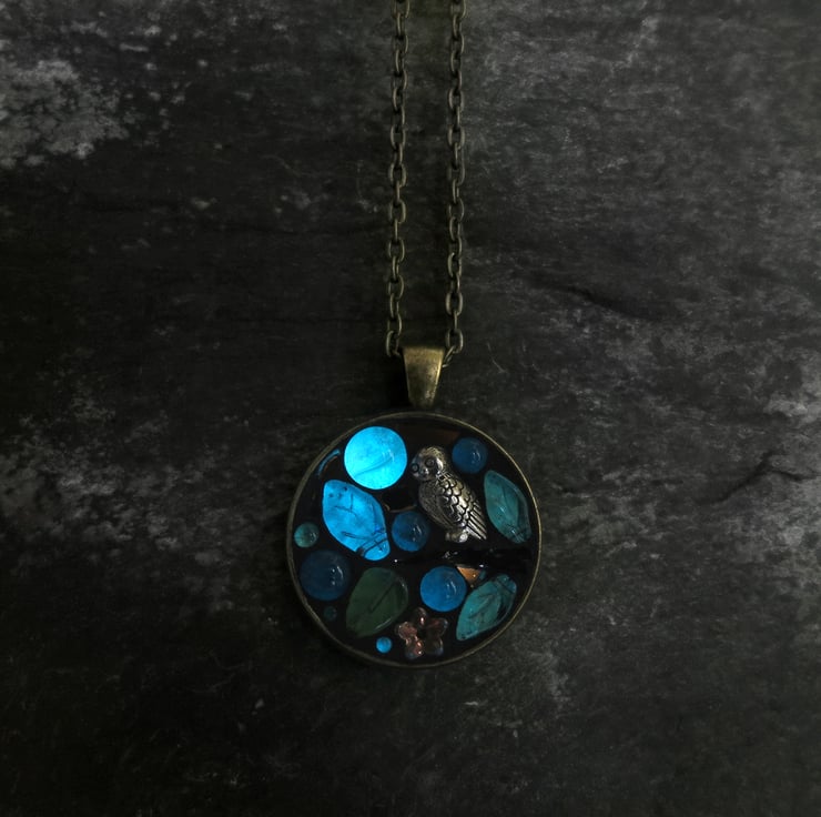 Inspired by nature unique glow in the dark stained glass mosaic pendant.