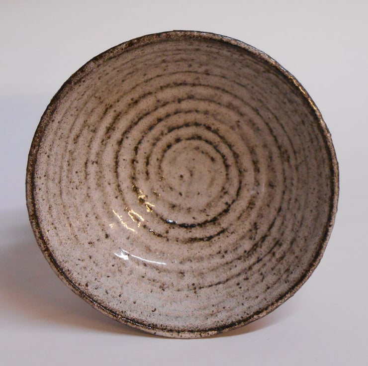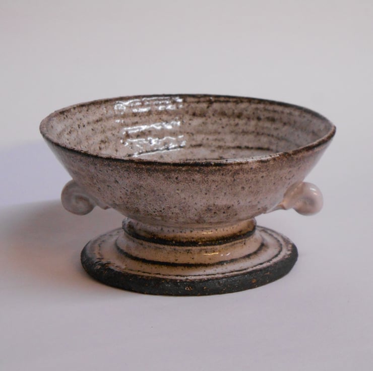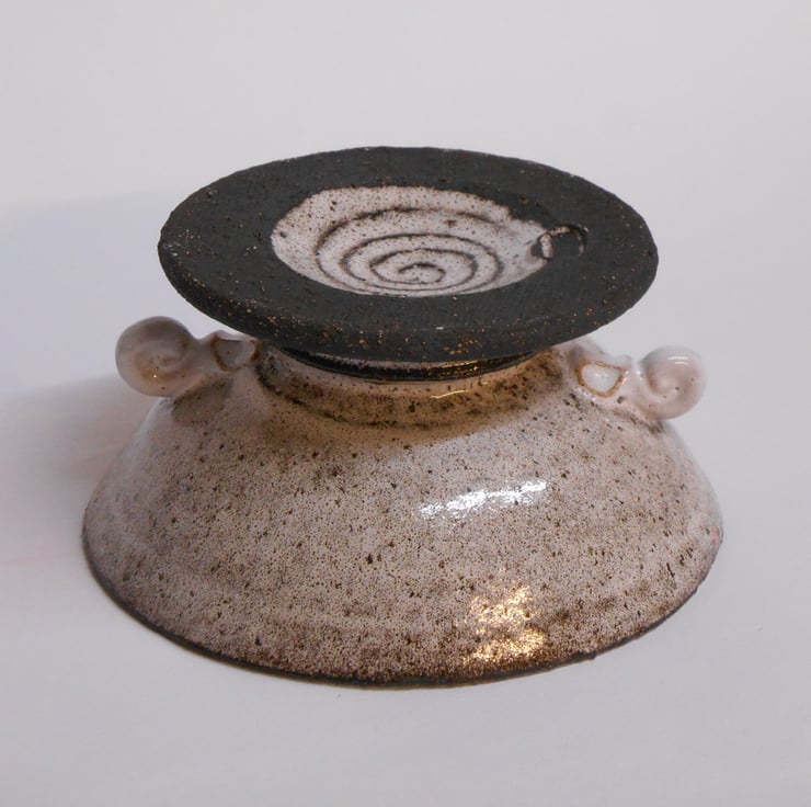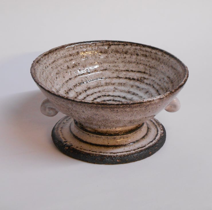 I have made many Stemmed bowls with twizzles, all different, and this was a creation using sandy Black clay glazed with contrasting shiny Tin white glaze.
