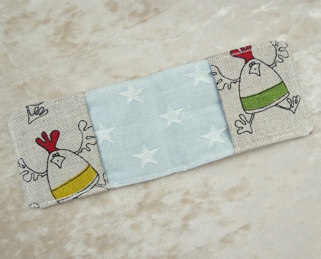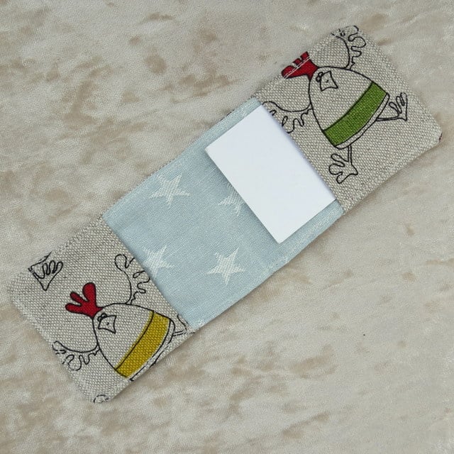 The fabric used is a medium weight cotton, with a whimsical cockerels design.