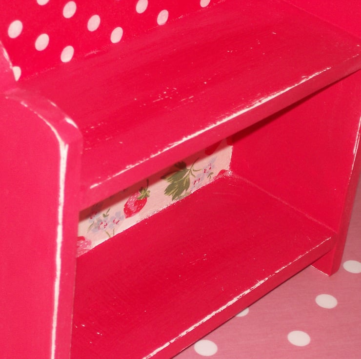 Painted in Cath Kidston Pillar Box Red then Decorated in Cath Kidston Contrasting Spot and Strawberry Designs...