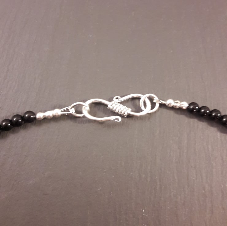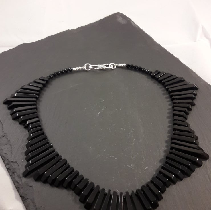 I feel that this necklace truly deserves the title of statement! It will lay around the neck like a collar, moving with your body as each bar is separated by a tiny black agate bead. It would look incredible with a strapless LBD and if you don't have one, is a great excuse to buy a new one ;). It is 17in/43cm in total and finished with a sterling silver S clasp.