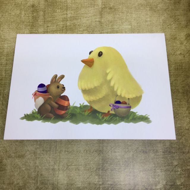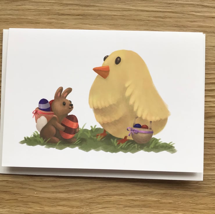 A bunny and chick blank greeting card with white envelope by DuffleCat Prints (Damian Case)