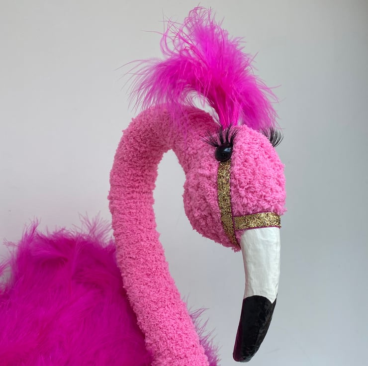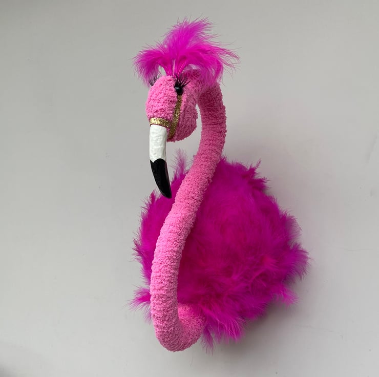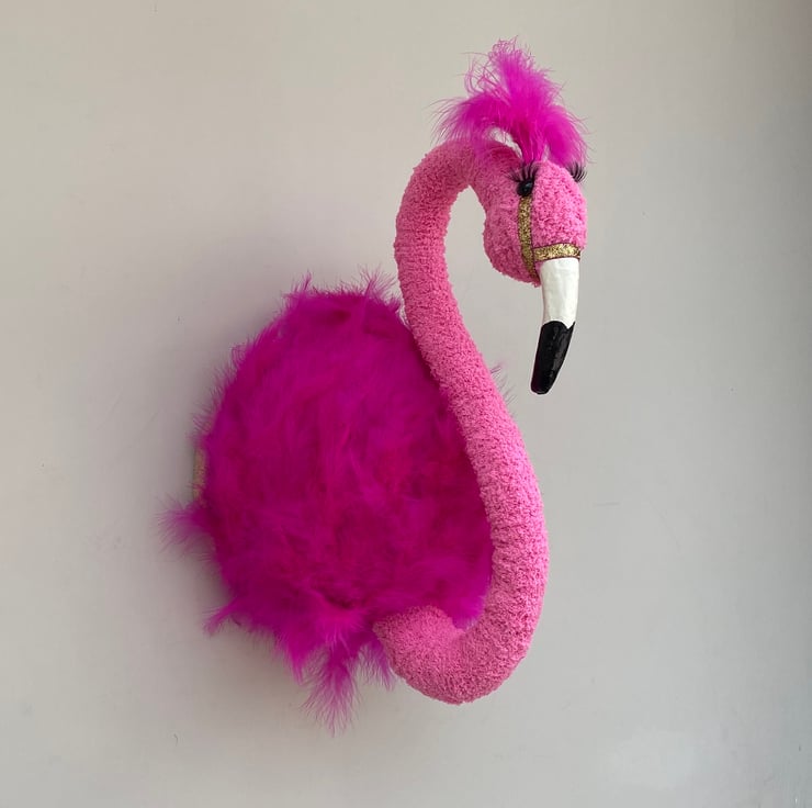 Handmade pink wall mounted baby flamingo.
