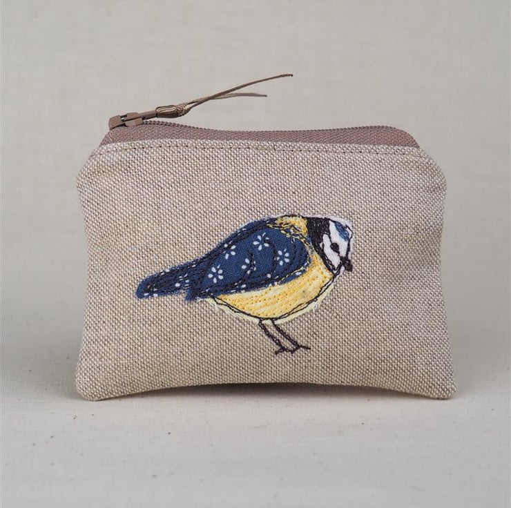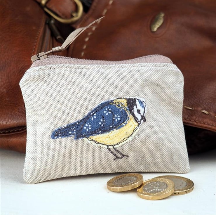 This beautiful handmade purse is made from Linen Look Cotton fabric. The purse is lined with soft cotton and has a zip fastening. It features one of my own unique designs on the front cover and is stitched using the Freehand Machine Embroidery technique.