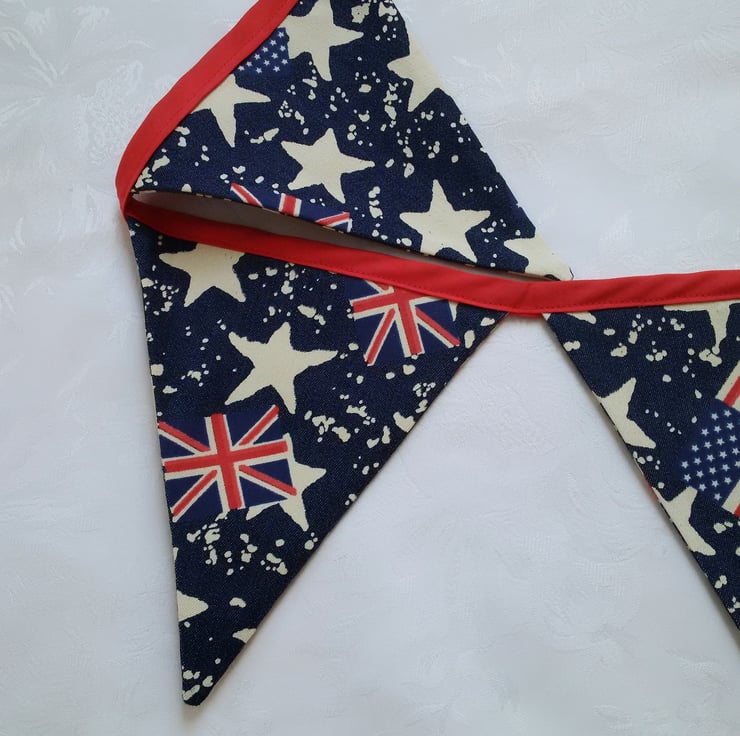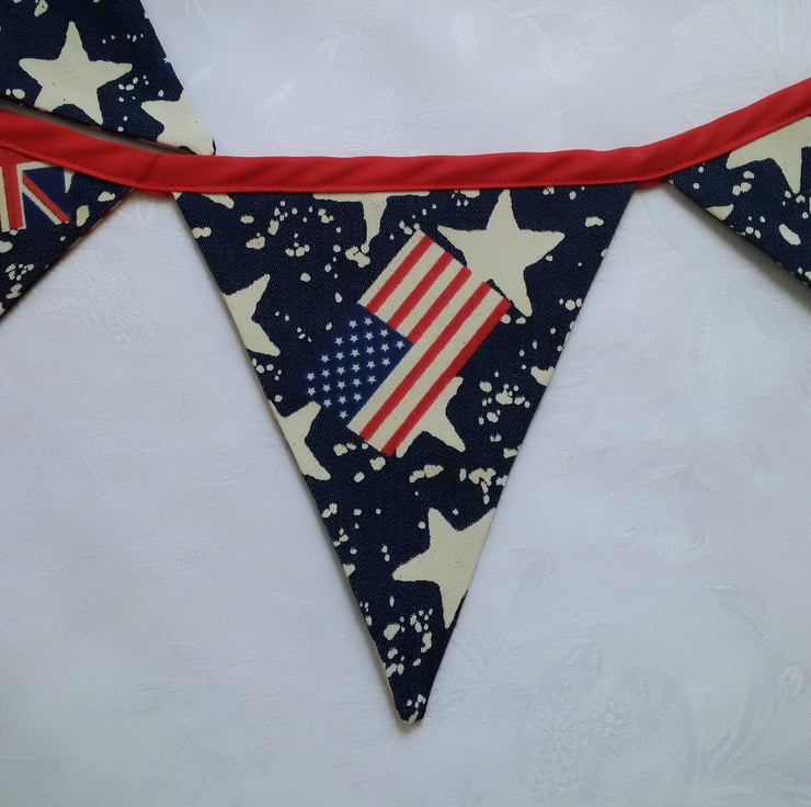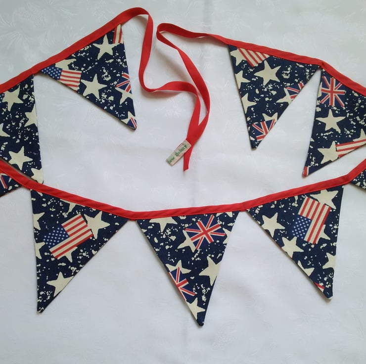 Denim bunting with Union Jack's and Stars and Stripes flags.