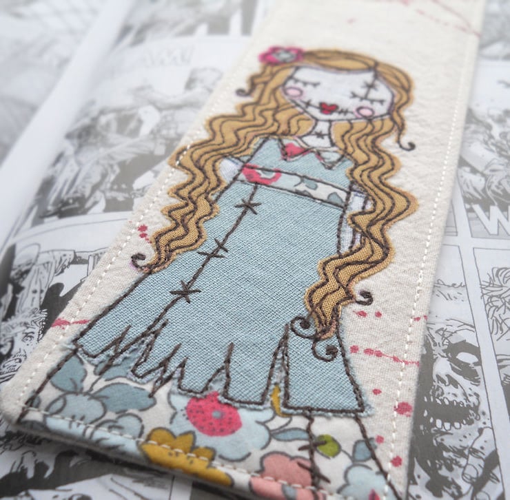 this bookmark is made entirely on a domestic sewing machine – there is no computerised wizardry here - everything is cut, stitched and handmade, with care, by me, ensuring each item is unique, well made and securely constructed.