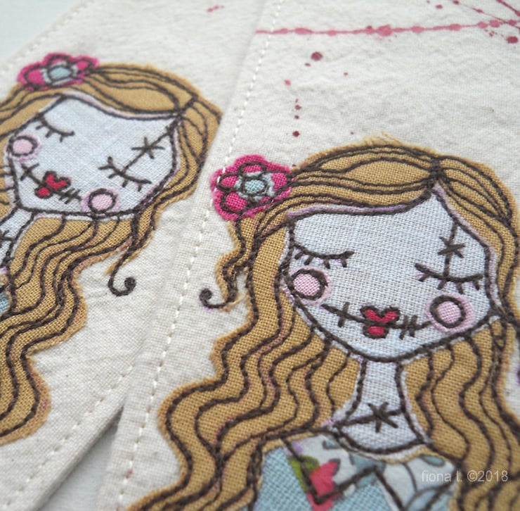 due to the very nature of free motion embroidery, blood spatter & handmade, each bookmark will vary eeeever so slightly.