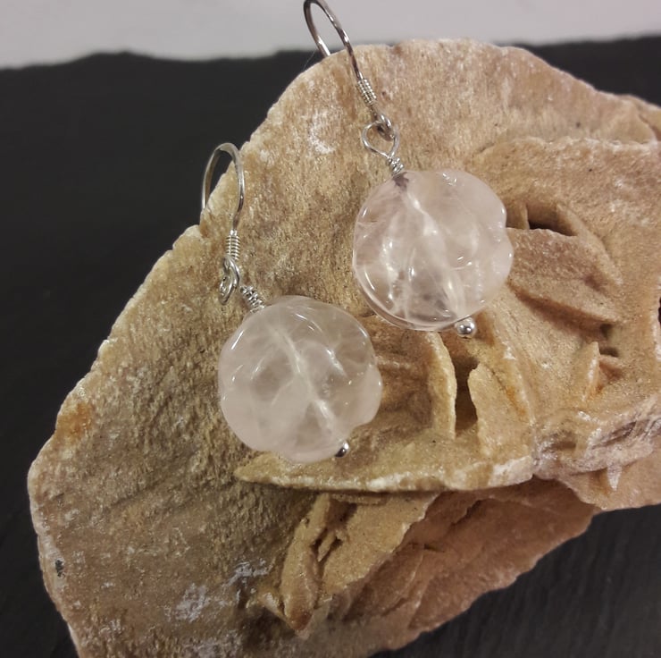 These cute earrings are simply carved rose quartz roses on sterling silver hooks. The roses are 2cm in total below the hooks. If you would prefer posts, please put it in the buyer comments box.