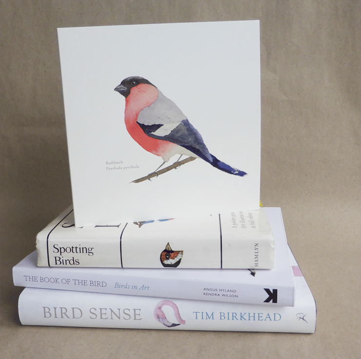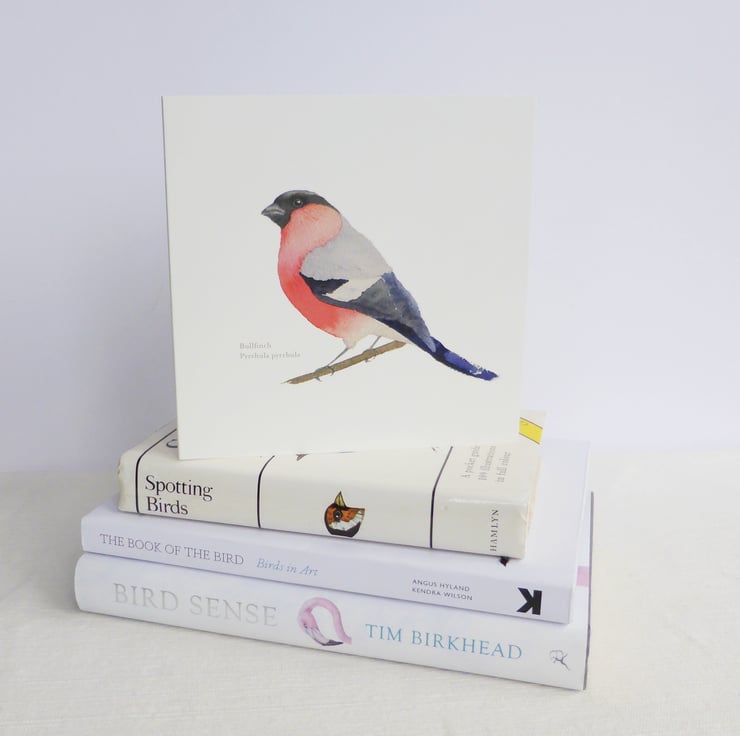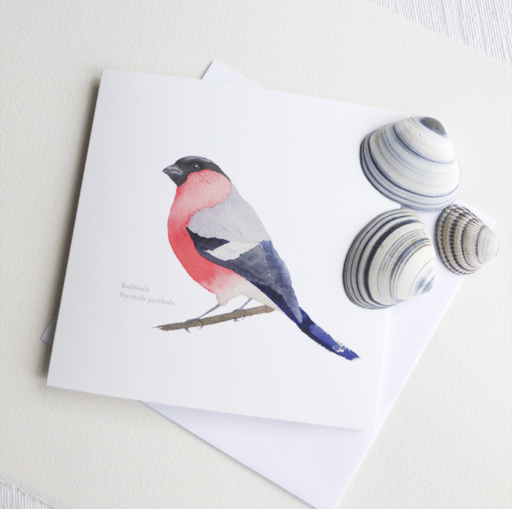 I made a wall calendar of garden birds as a present for my friends and family just before Christmas. I decided to make my watercolour bird illustrations into some cards. This one is the dapper bullfinch, who lights up my garden like a lightbulb.