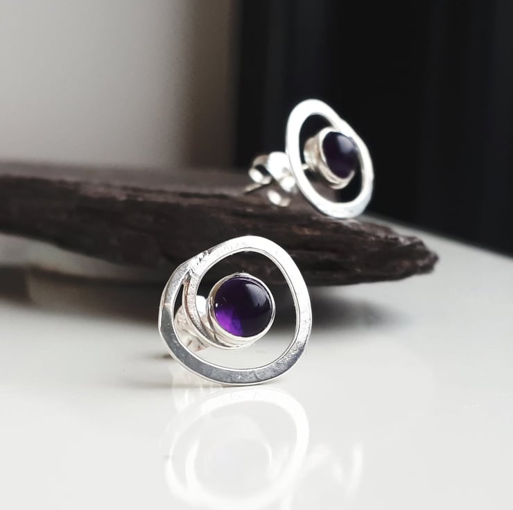 Recycled Sterling Silver Swirl Amethyst Earrings