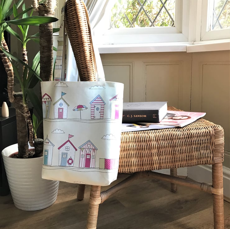 This beach huts tote bag is very versatile - perfect for use as a shopping bag but pretty enough to be used as a handbag. It can be easily folded and placed inside a handbag. With its lovely beach themed fabric it would make a lovely gift, particularly for someone who loves beach huts or the coast.