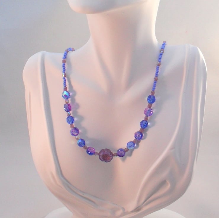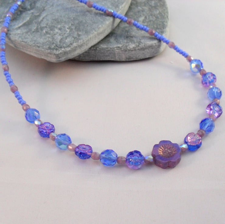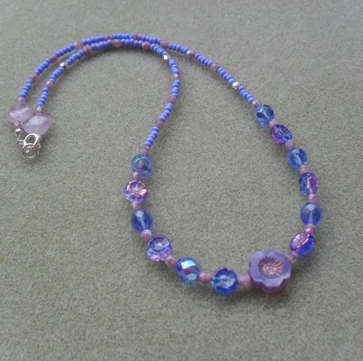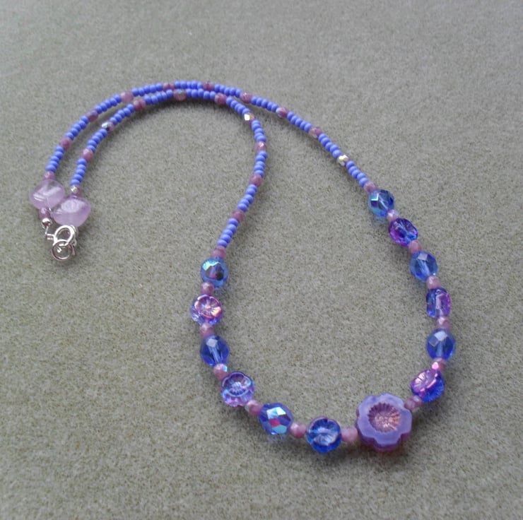 This dainty necklace has been made with Czech glass flower beads Czech fire polished beads which have a lovely sparkle and Czech glass seed beads.