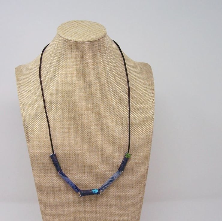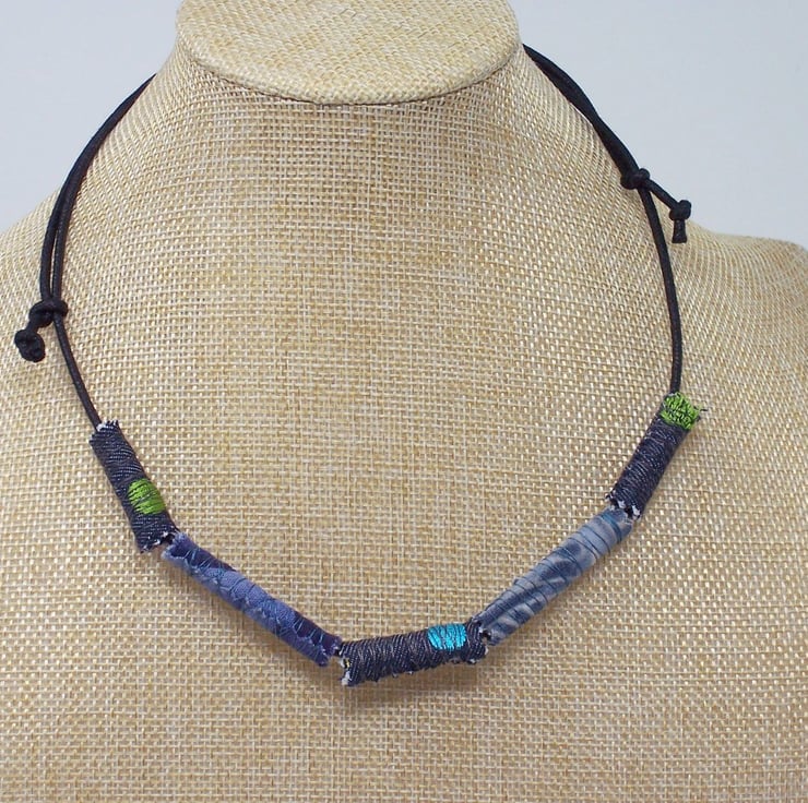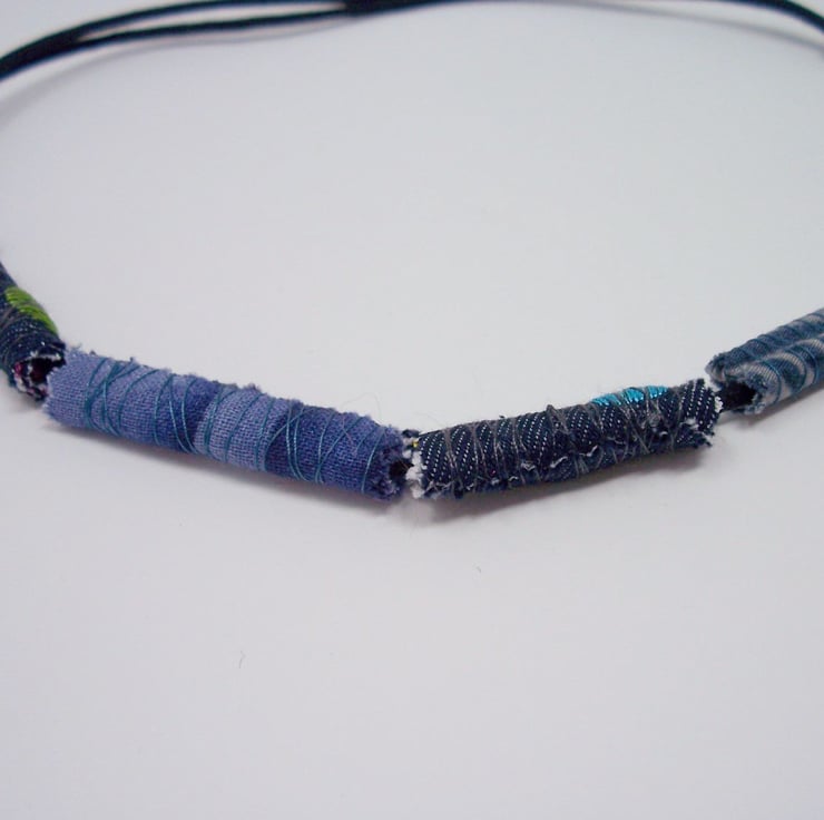 Super lightweight textile necklace. Handmade fabric beads - thread wrapped and hand stitched fabric beads. Edges have been left raw so there is fraying - this is deliberate.