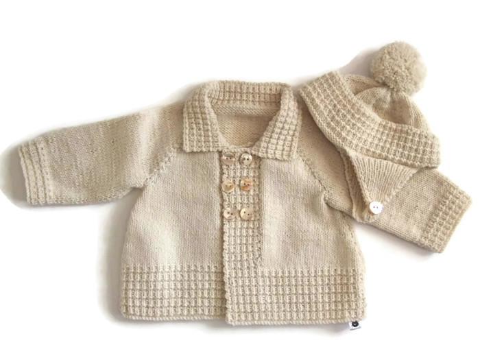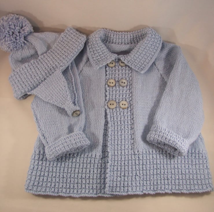 A beautiful little driving coat hand knitted in Merino wool or supersoft acrylic
