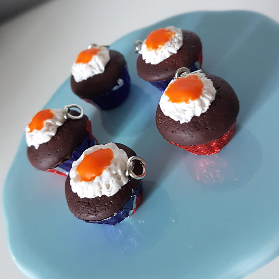 The charm is handmade using polymer clay, with liquid clay used for the gooey orange topping, and whipped cream is carefully and delicately picked and texturised by hand. Finished off with an authentic creme egg wrapper, secured and cut to fit the cupcake casing size!
