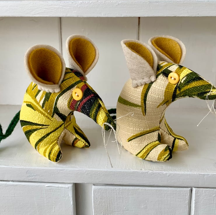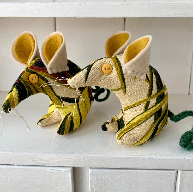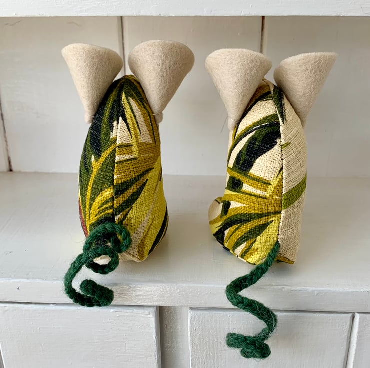 Retro 'tastic Mouse mouse has button eyes, felt ears and a plaited wool tail and cotton whiskers. Approx 10cm tall from the tips of the toes to the top of the ears and approx 11cm from nose to bottom.