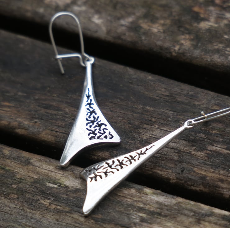 Long earrings entirely made of sterling silver.