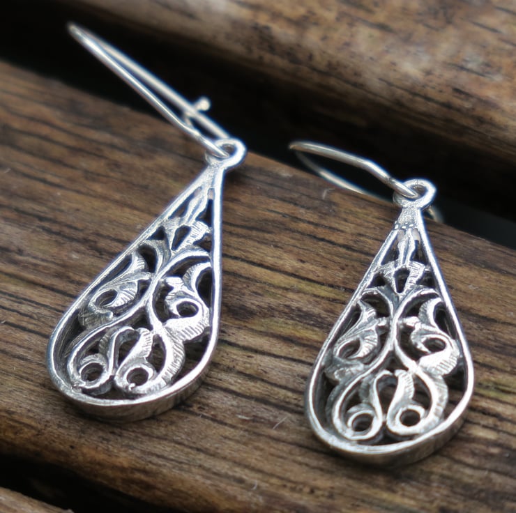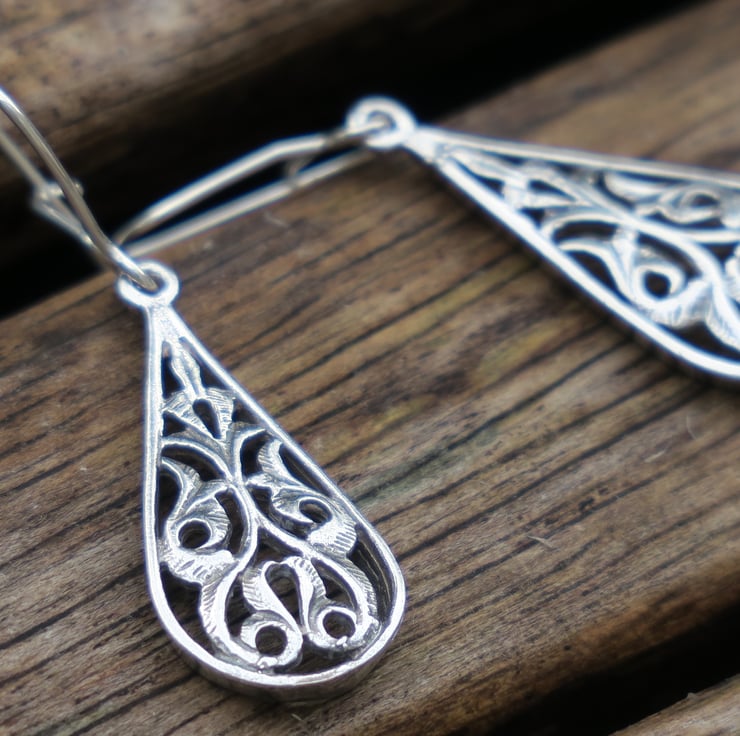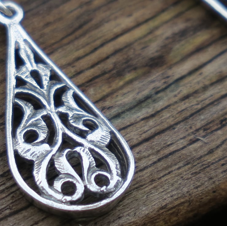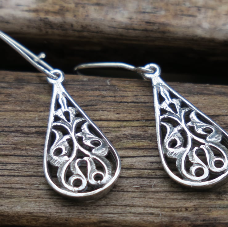 Teardrop earrings entirely made of genuine sterling silver.