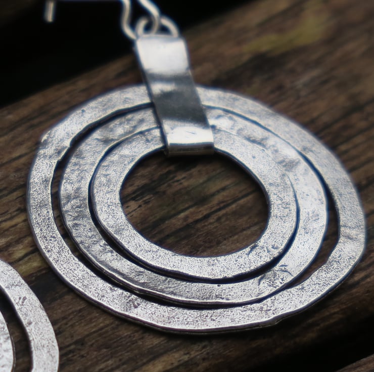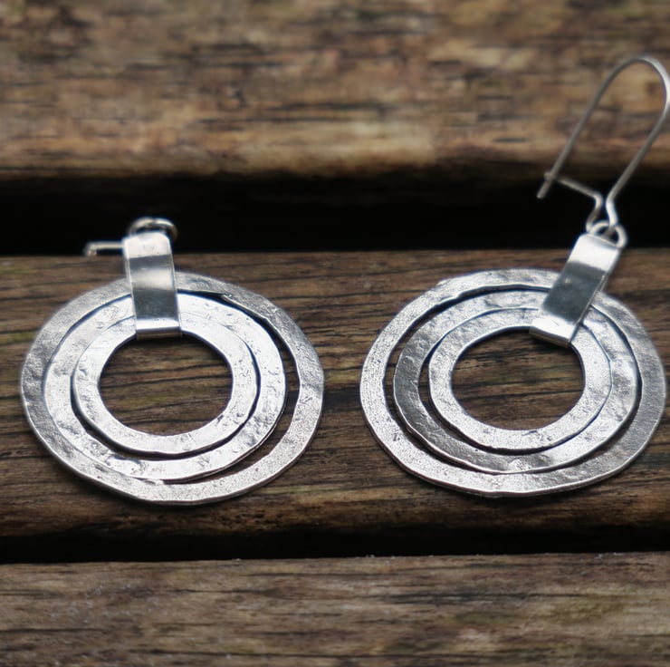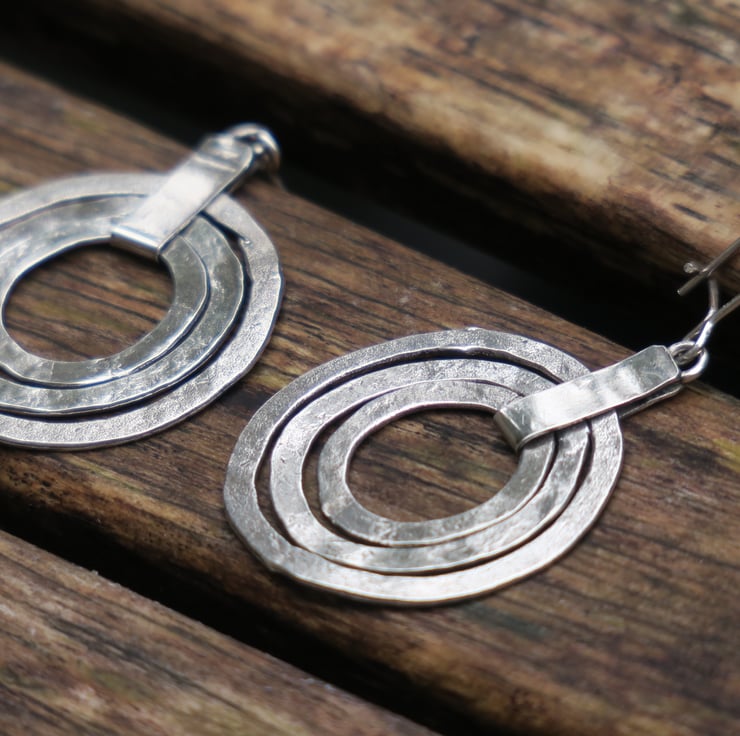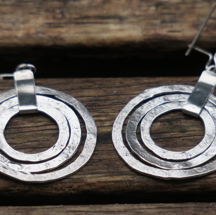 Triple hoop earrings entirely made of genuine sterling silver.