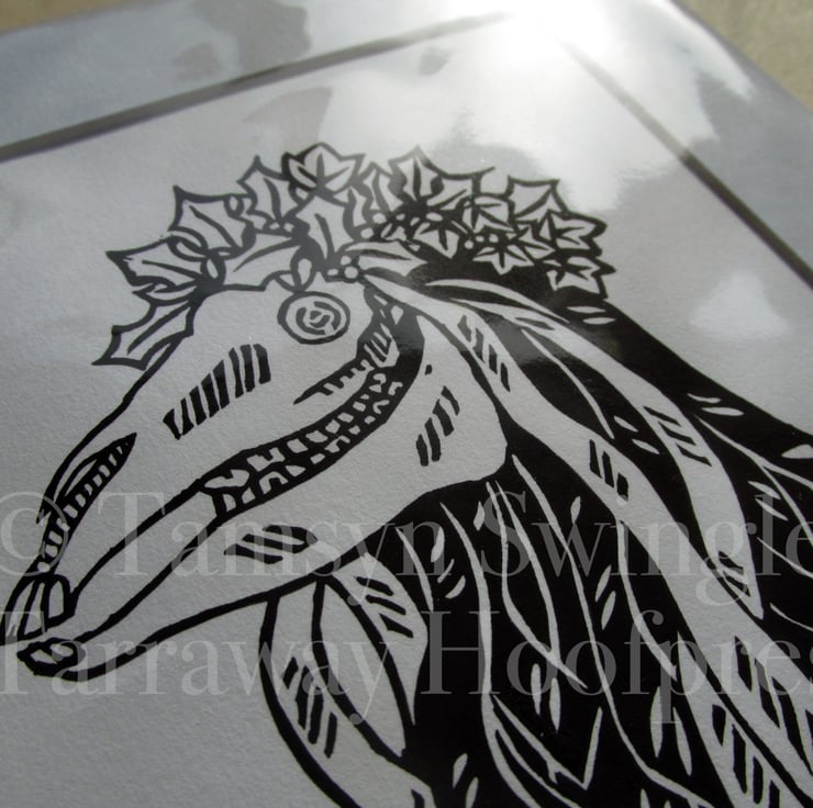 Limited edition of 50 prints of this design in black and white, also available in full colour in an edition of 50 via the shop page. Delivered mounted and wrapped in cellophane with a copy of the description of Pen Hood's significance in the Montol Festival in Penzance as seen below.