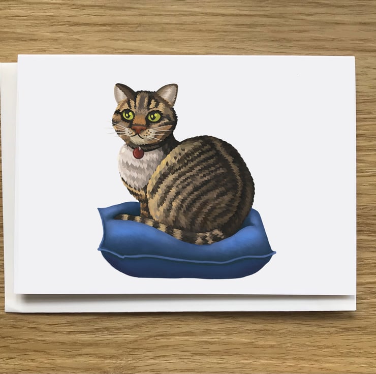 A Tabby Cat blank greeting card with white envelope by DuffleCat Prints (Damian Case)
