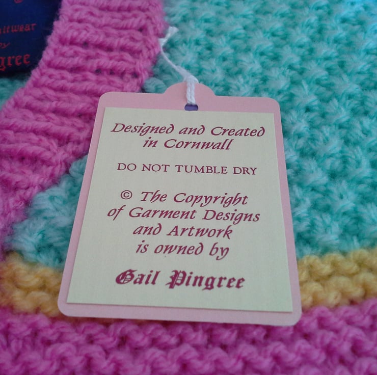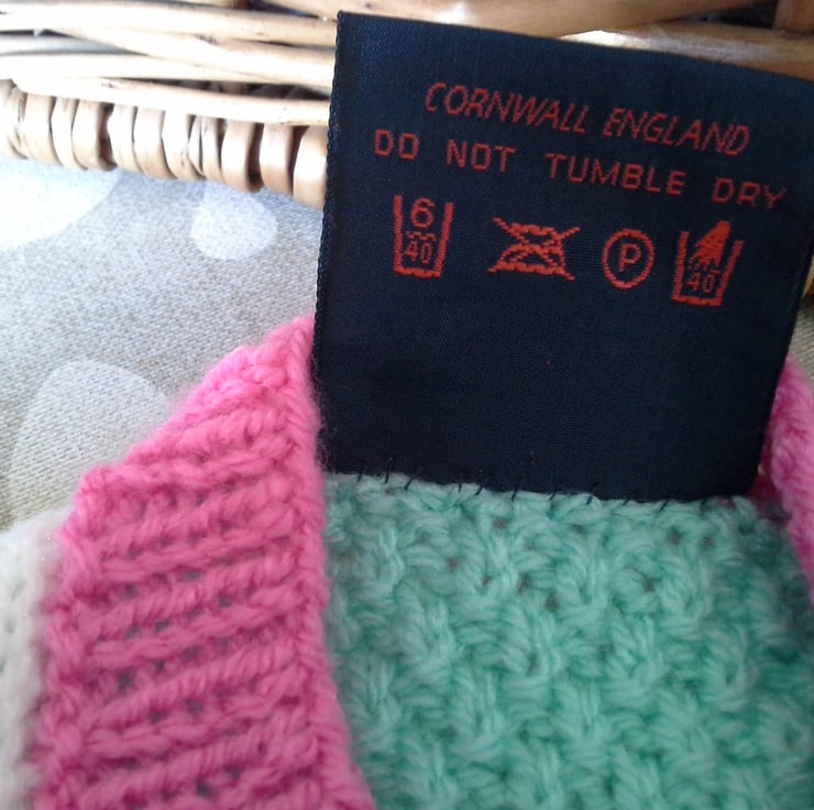 Baby knitwear is designed and hand crafted by Demelza Designs in Cornwall meeting UK baby safety standards, Only branded premuim acylic, acrylic/natural fibre blends or pure natural fibre yarns are used in baby knitwear which conforms to BS984/76 standards.