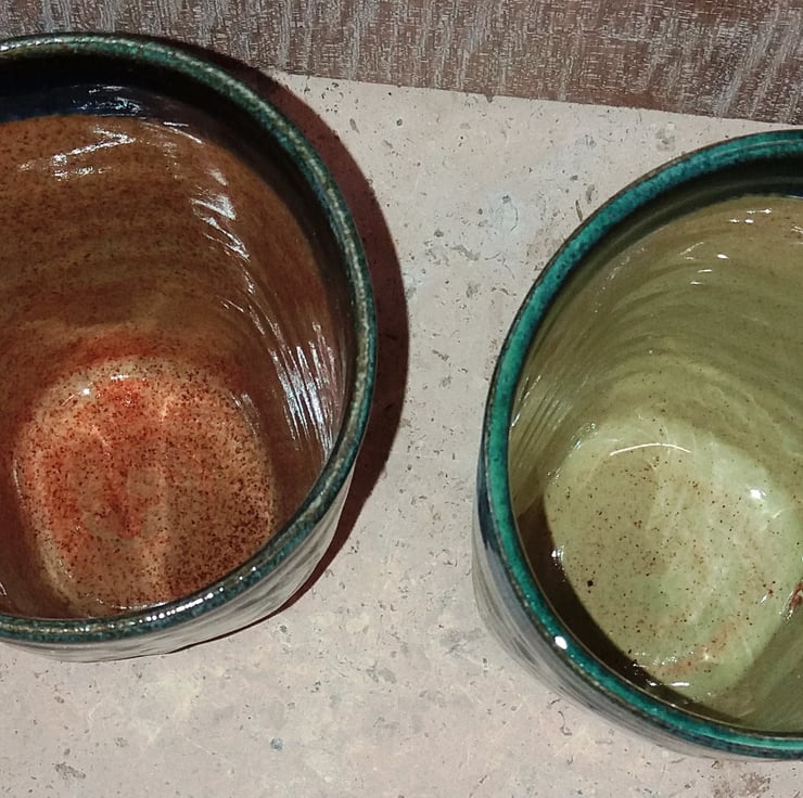 Inside they are speckled beige and speckled honey glazed.