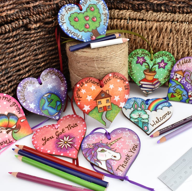 I love creating unique and personalised mementos that make perfect gifts. These hearts are made to order.