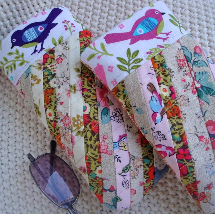 Fully lined in a printed cotton fabric , and lightly padded for softness & to protect your glasses from minor bumps.
