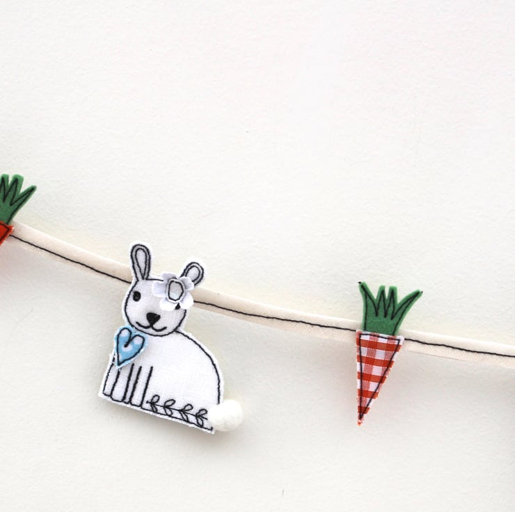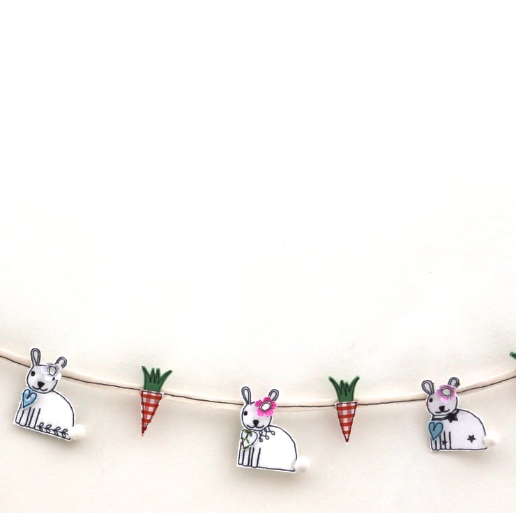 Bunny and carrot bunting measures approximately 120cm with nine bunnies and ten carrots suspended along its length.