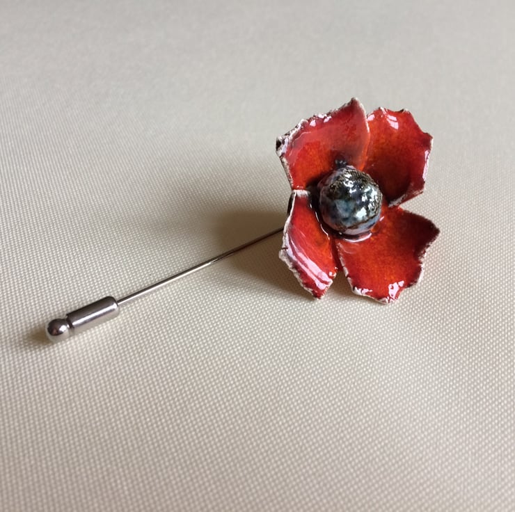 Handmade ceramic Poppy Pin