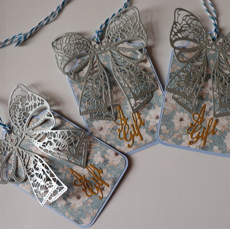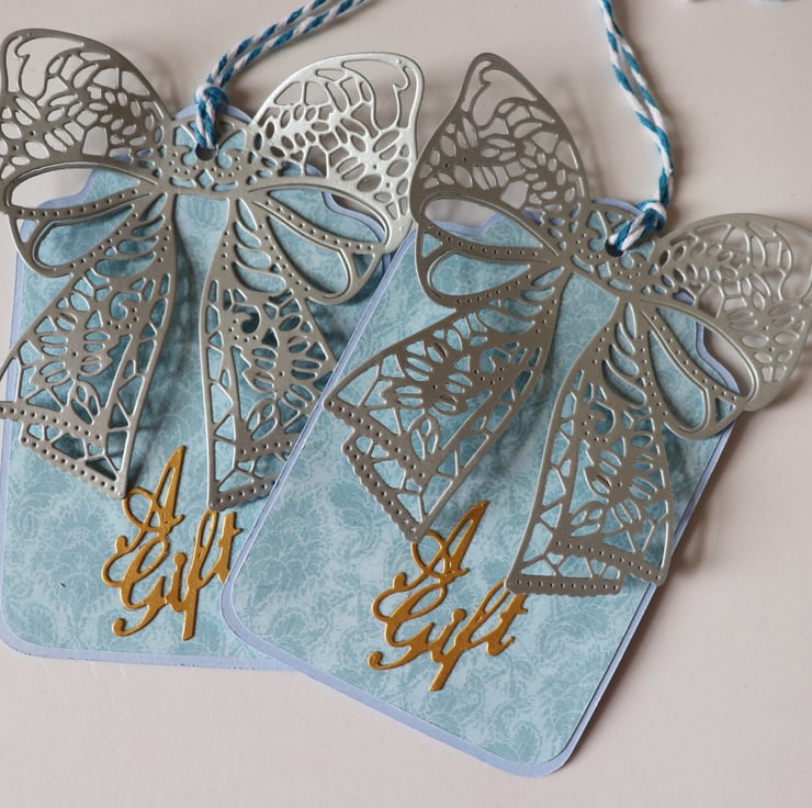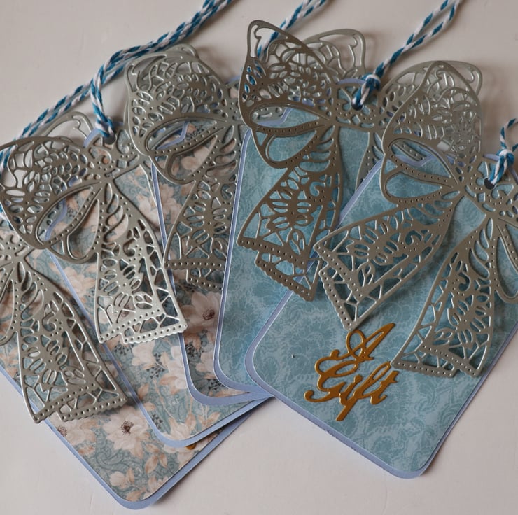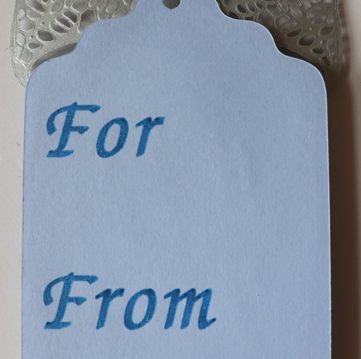 Here is a set of 5 Gift Tags in silver and blue.