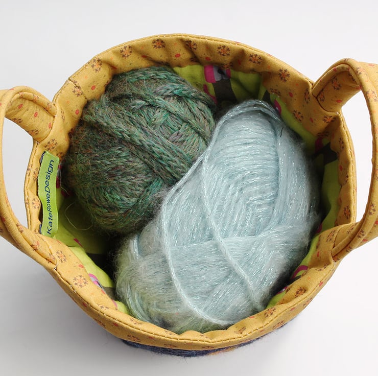 The project/knitting bag has been made using navy coloured fabric. I have hand appliquéd a dog (Geoff) onto the bag along with a hand embroidered fern. The outer has been quilted to add structure. The lining and handles are made using my own complimentary prints. The handles are made in my camel coloured Aztec print and lined in my green dog print. The bag is suitable for small craft projects such as sock knitting - it is bucket shaped so you can find things easily. The depth of the bag is 15cms (6 inches) and the base is 9cms square (3.5 inches square).