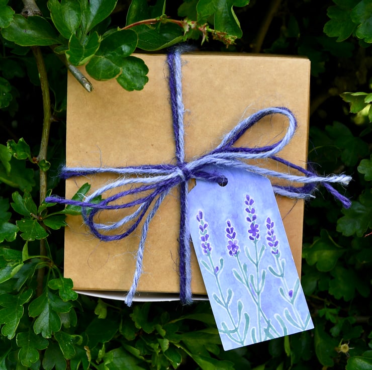This will be beautifully packaged in a special brown cardboard box and tied up with coloured string. One of my personally designed gift tags will be attached, on which you can write your own message, or I can add a message for you.