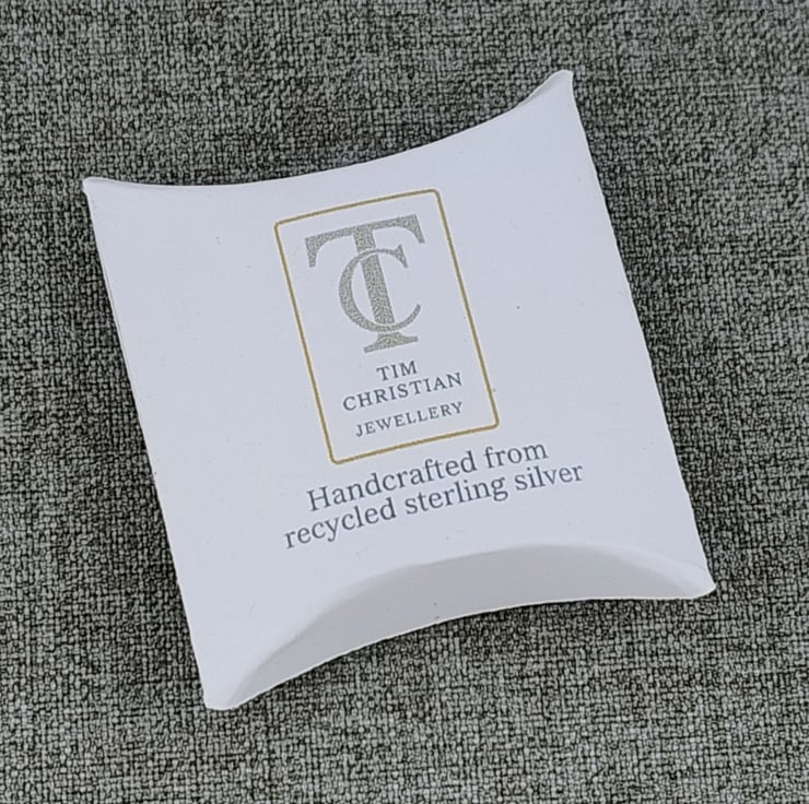 Each piece is carefully packaged using recycled materials wherever possible. Your jewellery is placed inside a small protective sleeve to help reduce tarnishing, then presented in a simple pillow box made from recycled card.