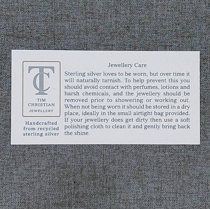 Handmade silver jewellery, crafted slowly in Shropshire using recycled materials. Orders are carefully made and packaged with sustainability and long-term care in mind.