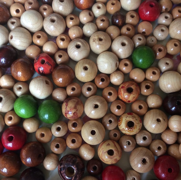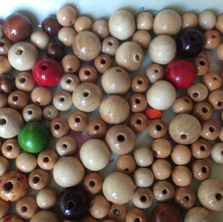 Just over 200 beads. Mainly natural wooden beads, with a few coloured/ patterned wooden beads .