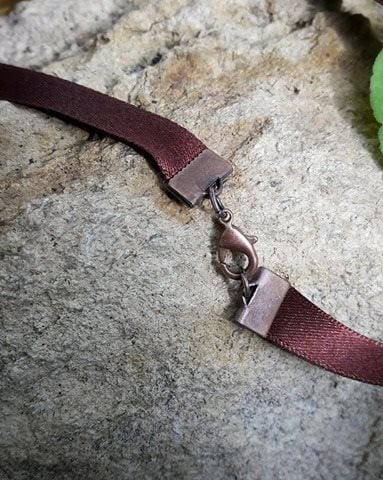 The bail has been made in such a way that you can easily slide off the ribbon necklace and switch it to a chain if required.