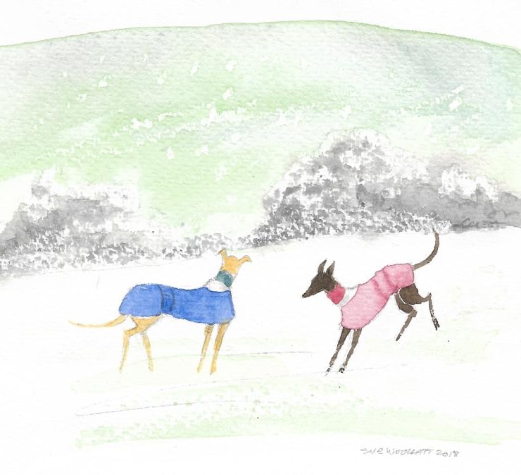 It snowed recently in Cornwall and my two greyhounds had never seen snow. They loved it.