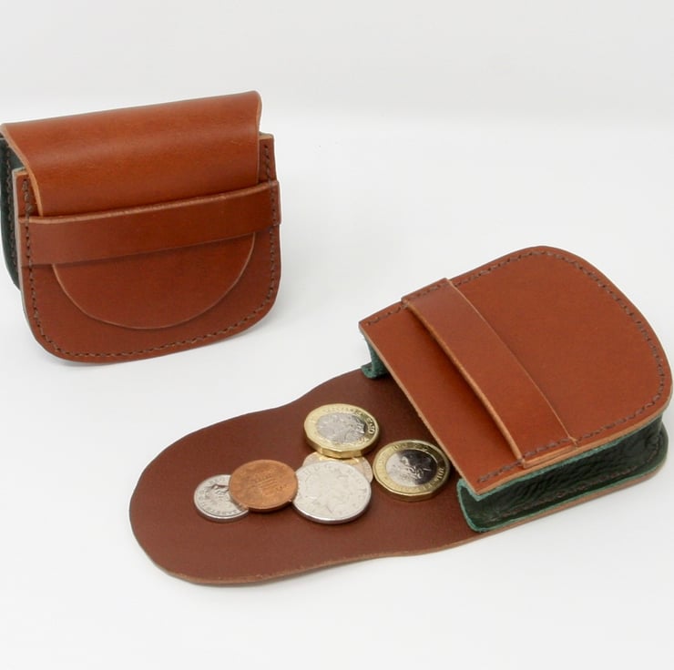 This large coin purse is made from dark tan veg-tanned leather, and hand-stitched using traditional methods.