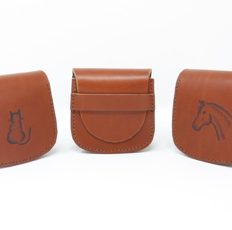 The back of the purse can be embossed with a motif, for example a horse's head, cat silhouette or butterfly. All embossed designs are hand drawn, and then painted after they have been embossed. This makes the details stand out nicely.