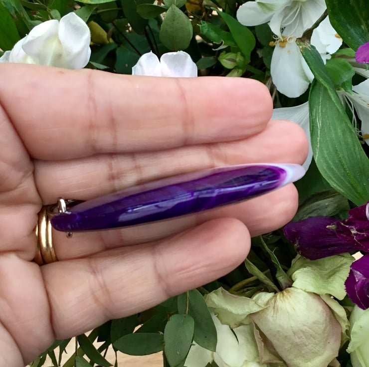 This stunning and purple banded Agate pendant bead is something which should be on show so I thought it would make a fantastic keyring, or handbag charm for any lucky lady or gent. If you wanted to buy a gift as a token of love, or friendship, then this would be ideal. Equally, ideal for anyone who just loves Agate and Purple tones.