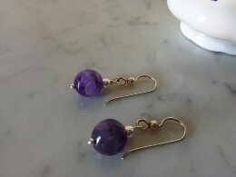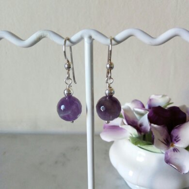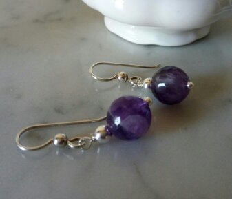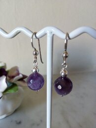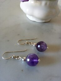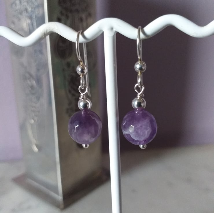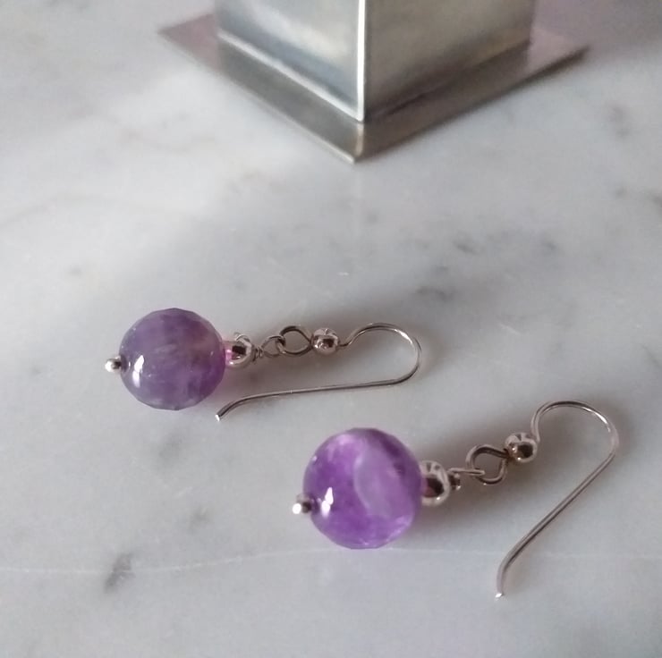 Faceted 10mm Amethyst Gemstones hanging from Sterling Silver Ear wires
