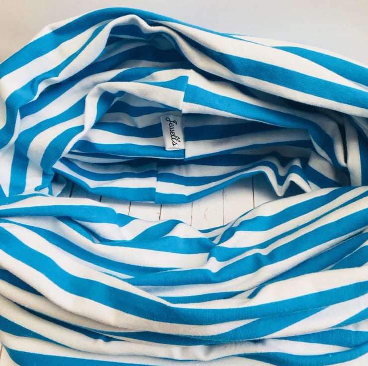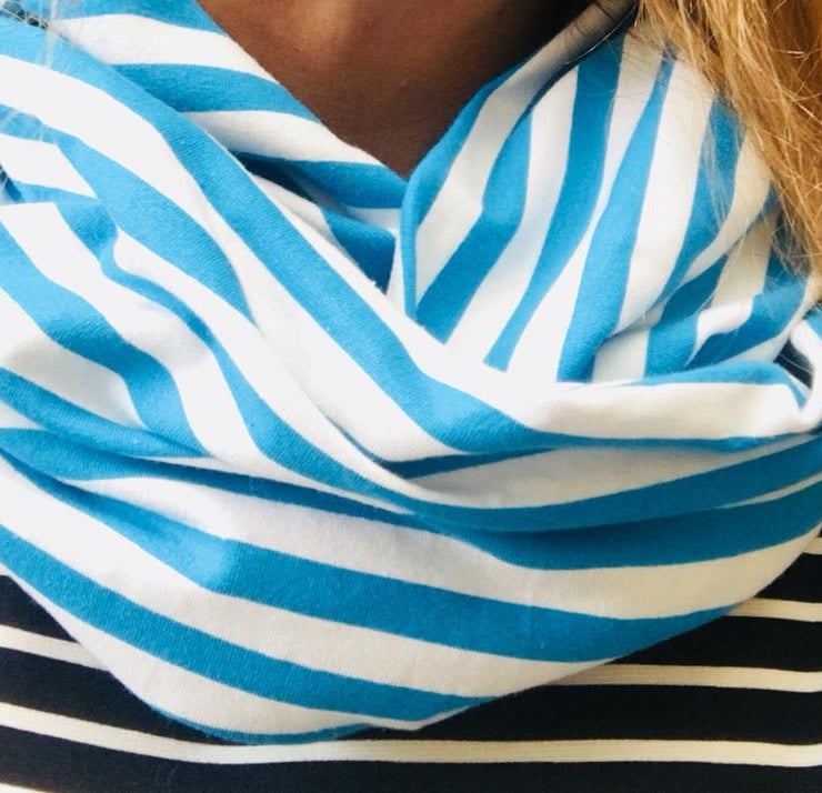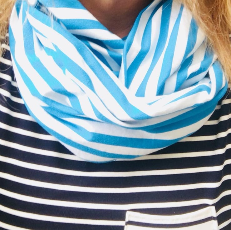 Jersey infinity scarf in traditional blue and white stripe colours of Cornwall